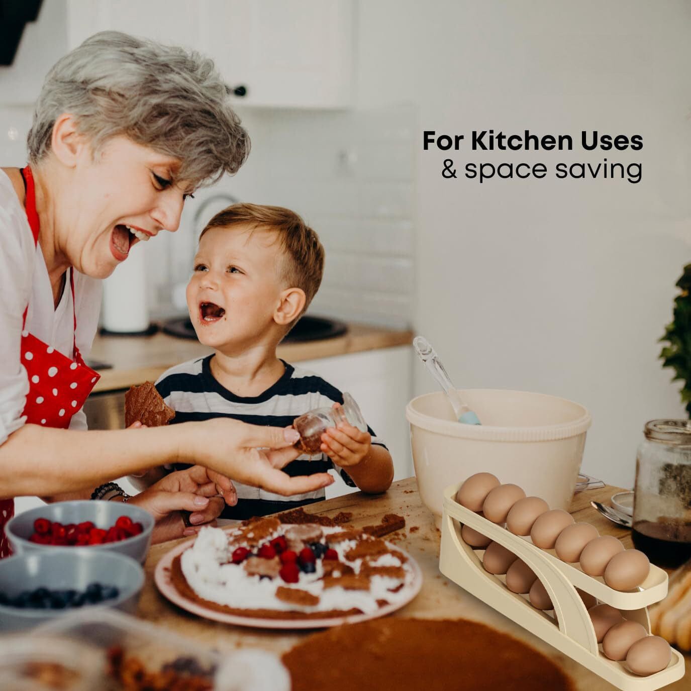 Introducing GlideEgg™️ Automatic Roll-Down Double Layer Egg Dispenser, the ultimate solution for efficient and stylish egg storage in your kitchen.